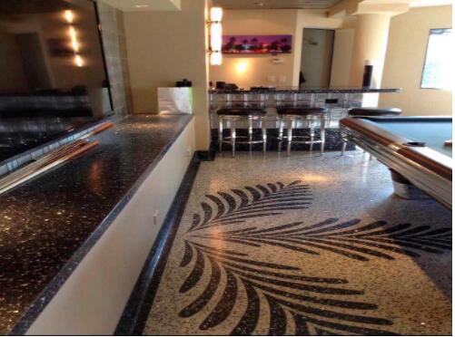 环氧磨石地坪,是模仿水磨石地坪施工的新型地坪,拥有环氧树脂地板的所有优异性能,可以做到墙地一体化。 环氧磨石地坪采用无溶剂配方或水性配方设计,减少了环境污染以及施工时对人体的伤害。环氧磨石地坪附着力极好、整体无缝易清洁、环保、耐磨、耐冲击、耐水、耐酸、耐碱等耐化学药品及油渍侵蚀,经久耐用。更因其含镶嵌式图案,使磨石地坪的艺术观赏性和实用性得到了完美结合,图案稳定,不易磨蚀。 环氧磨石地坪特性:拥有环氧树脂地坪的所有优异性能;可以设计成各种图案、体现设计上的灵活性。 环氧磨石地坪适用场所:适用于大型商场、中高档商业大厦、豪华会所、展示厅、酒店大堂、住宅和别墅的地面装修。 环氧磨石地坪技术指标如下: